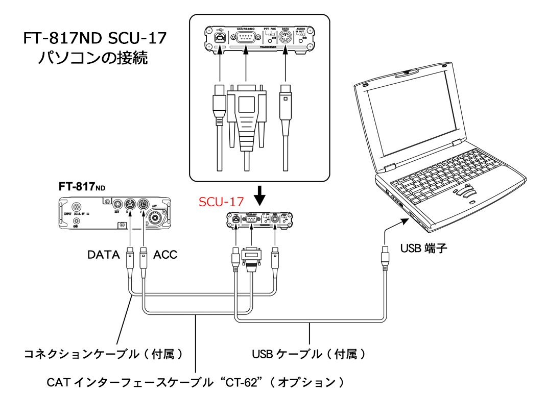 ここからは、MacBook Pro・SCU-17・FT-817NDを接続して設定を進めた。