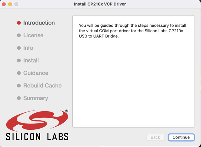 <CP210x Macintosh OS VCP Driver v6 インストール>