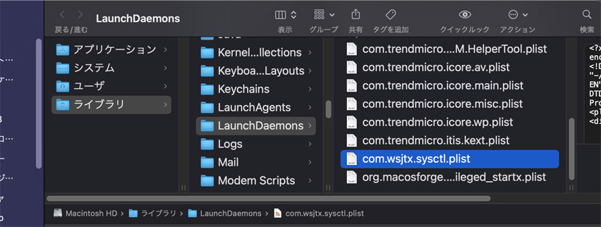 ◆ com.wsjtx.sysctl.plistを/Libralry/LaunchDaemonsへコピー