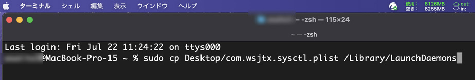 Desktop/com.wsjtx.sysctl.plist /Library/LaunchDaemons 入力
