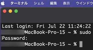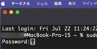 ・パスワード入力後Returnを押す(入力パスワードは表示されない)