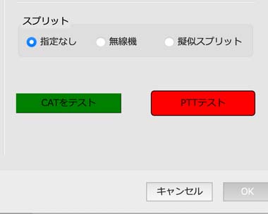 ・「CATをテスト」ボタンが緑色で無線機と繋がったので次にPTTテストにマウスを合わせてクリック