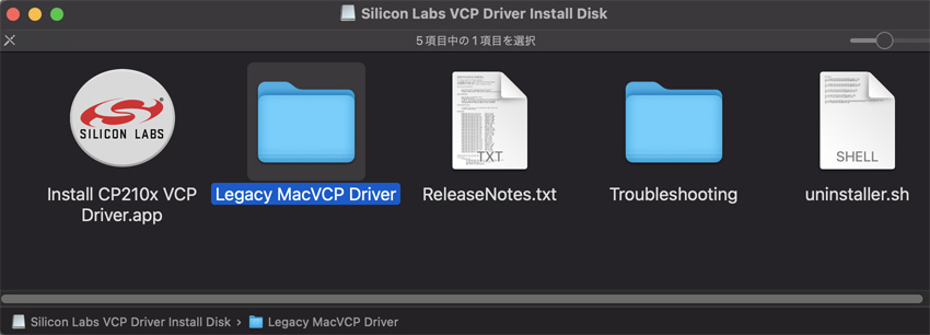 ・Legacy MacVCP DriverはmacOSのバージョンが古い場合に使う