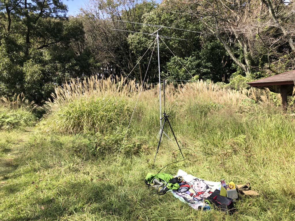 どこの山にしようかと悩んでいたが 標高差が少なく登ったことがある多気山(たげさん 標高377m 栃木県宇都宮市)で移動運用してきた。出発地点と山頂の標高差(約160m)が少ないので50MHz2ele HB9CVとダイポールを準備した。