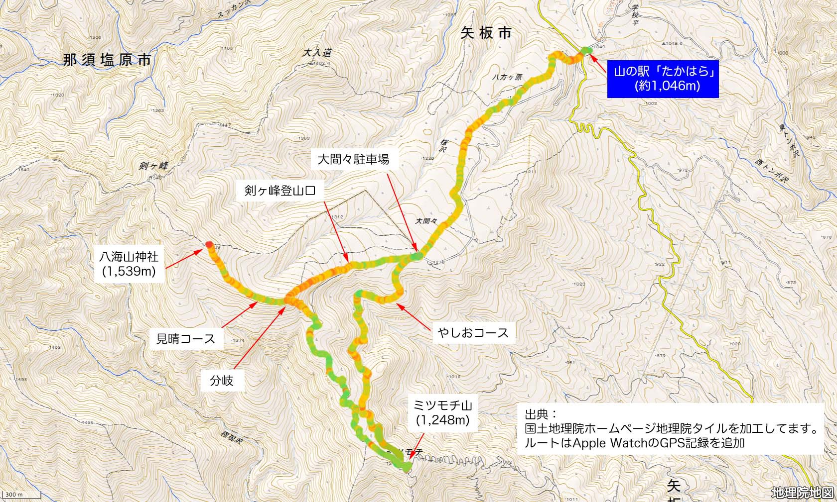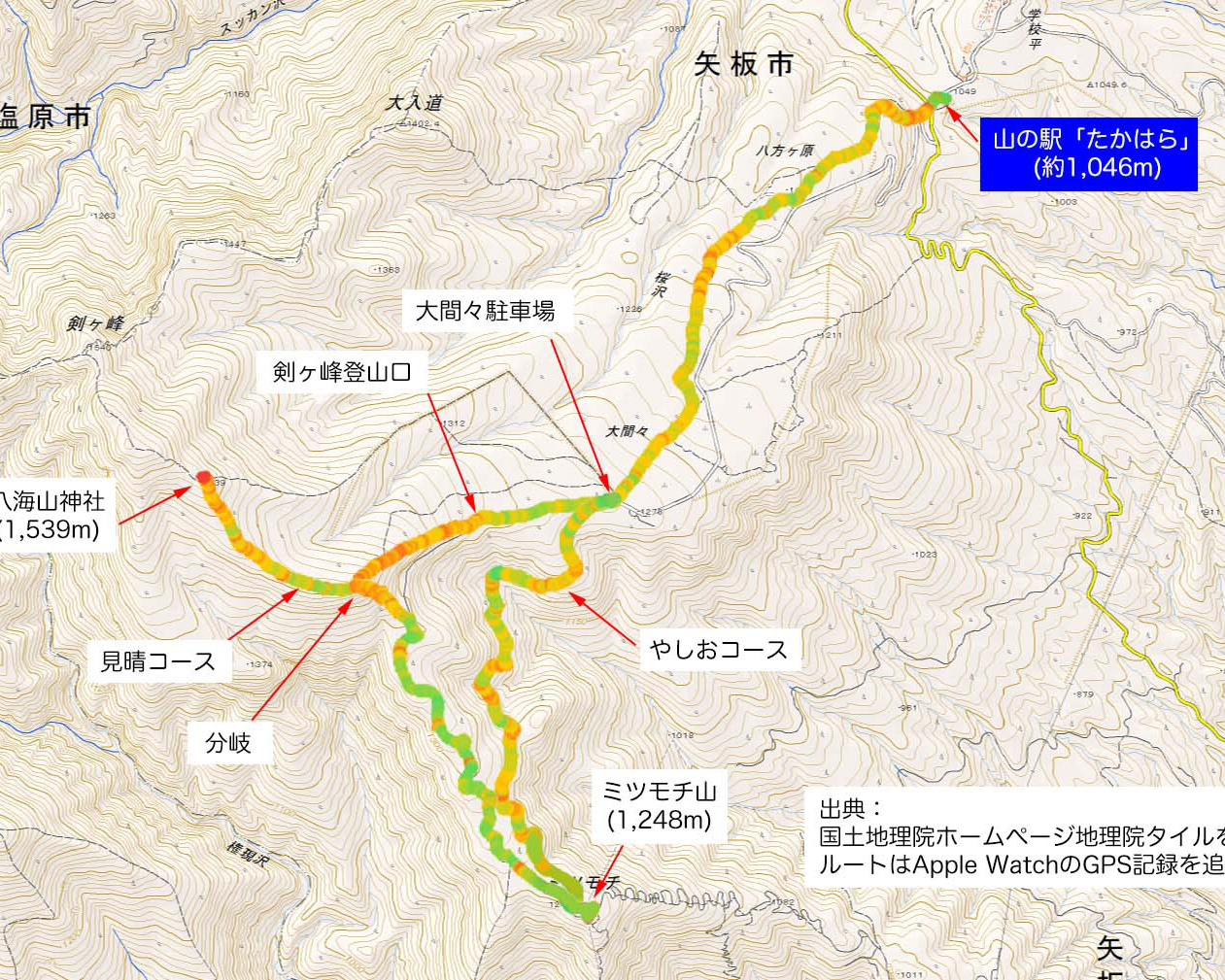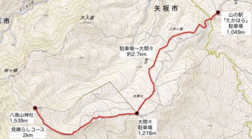 山の駅「たかはら」 :約1046m 八海山神社:1539m ミツモチ山:1248m あ |