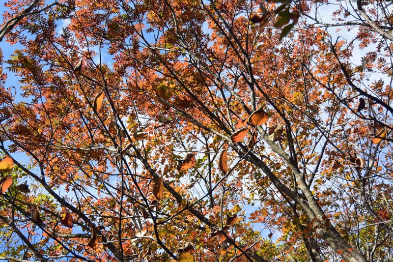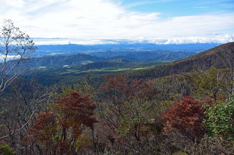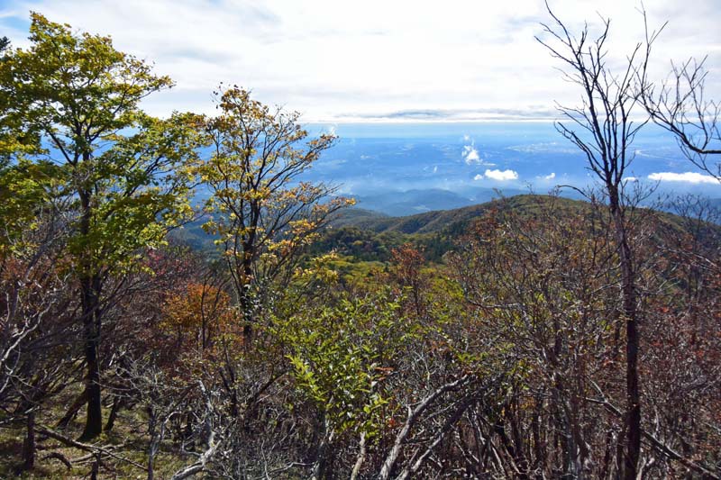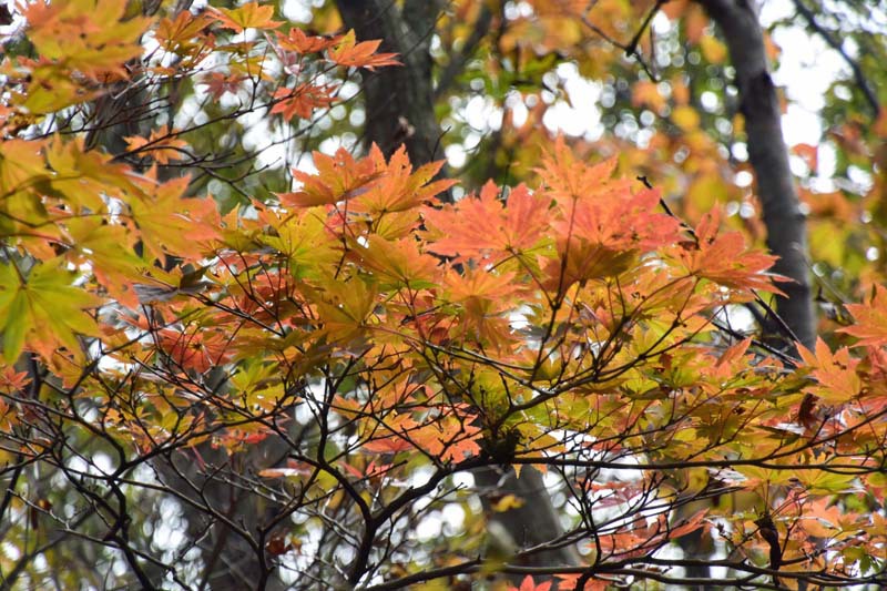 台風の後なので何度か訪れたコースを選ぶ。日射しがあると紅葉が 映えるが曇ってしまうといまいち。八海山神社からミツモチ山に向かう分岐から急な下りになるが、登山者が少ないのか登山道がふかふかで歩きやすく、紅葉も綺麗なところがあった。 帰りに山の駅「たかはら」で「おしらじソフト」を 食べ損ねたので、今回は時間に余裕を持ちゲットした。(美味しい)