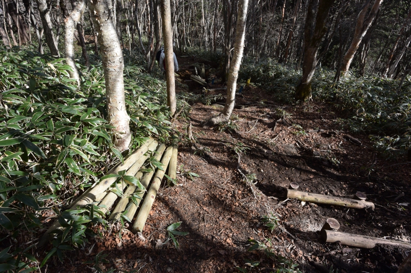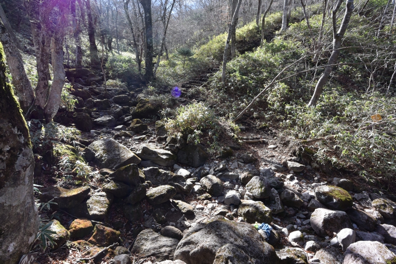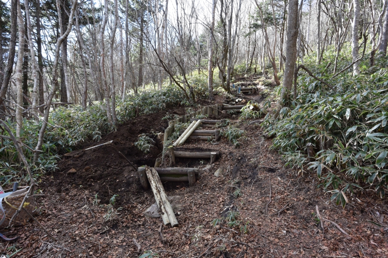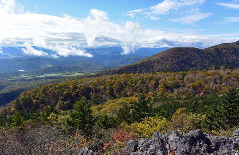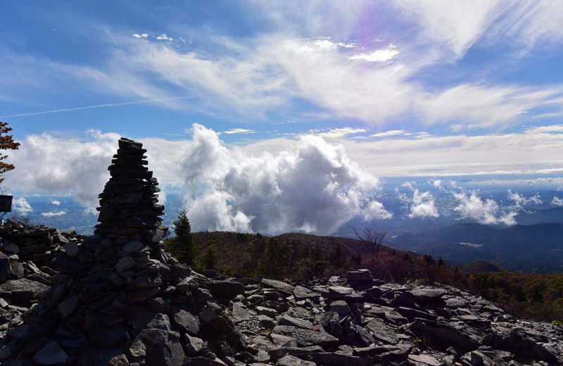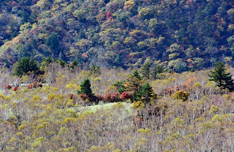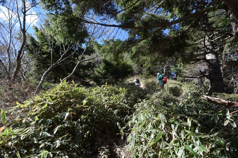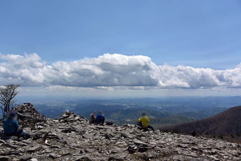<登り(赤線):1時間30分> 大間々駐車場 :10:45出発 登山口(見晴らしコース) あああああああああ:10:56通過 八海山神社 ;12:00通過 最高点 (1590m);12:15着 あ <下り(青線);1時間> 八海山神社 ;12:50出発 中間地点 :13:23通過 大間々駐車場 :13:50着 |