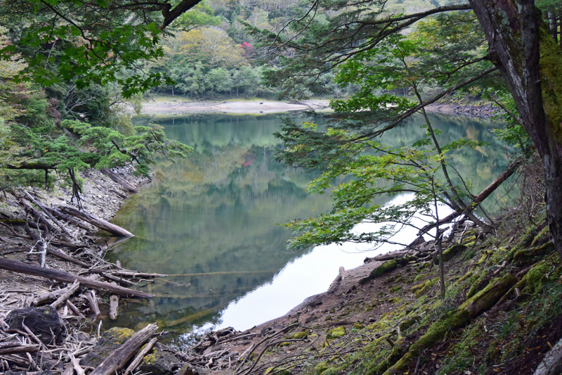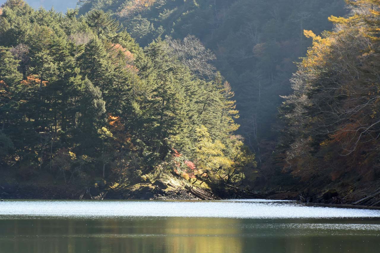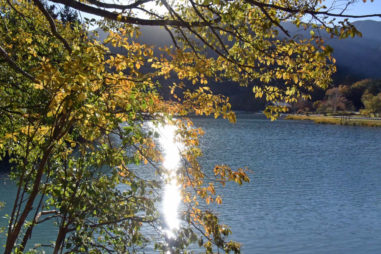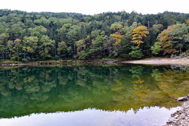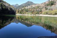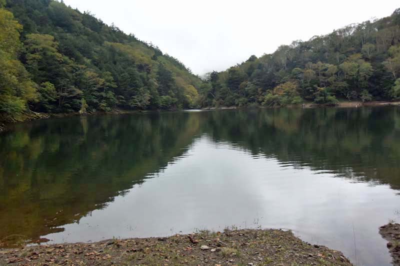 静かな湖は、風が無ければ風景が水面に映え、特に紅葉の時は綺麗だろう。紅葉には早かった