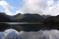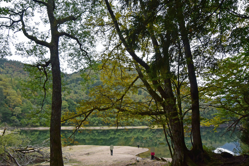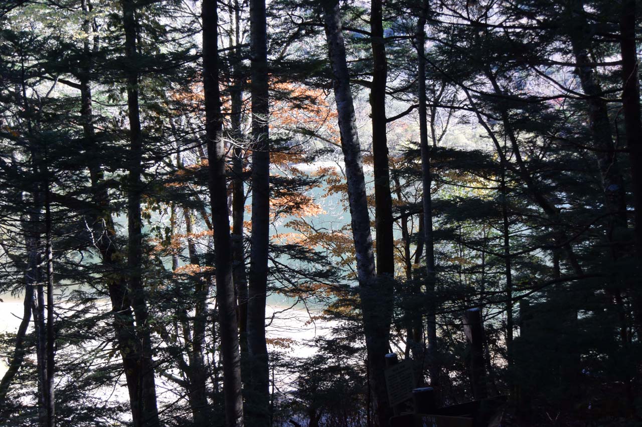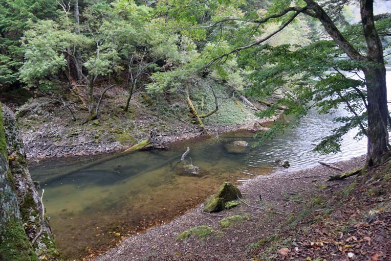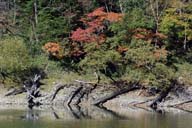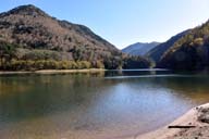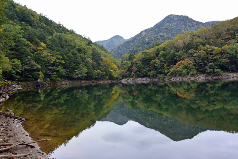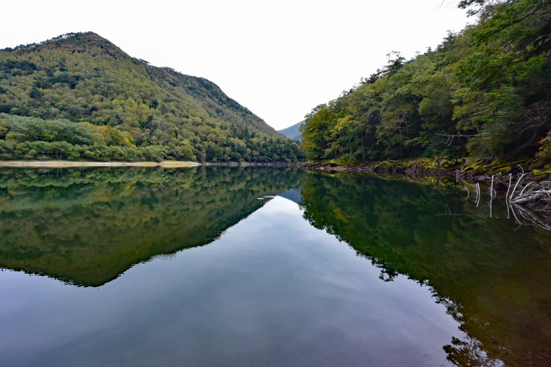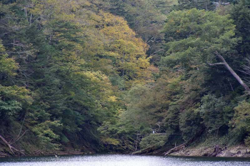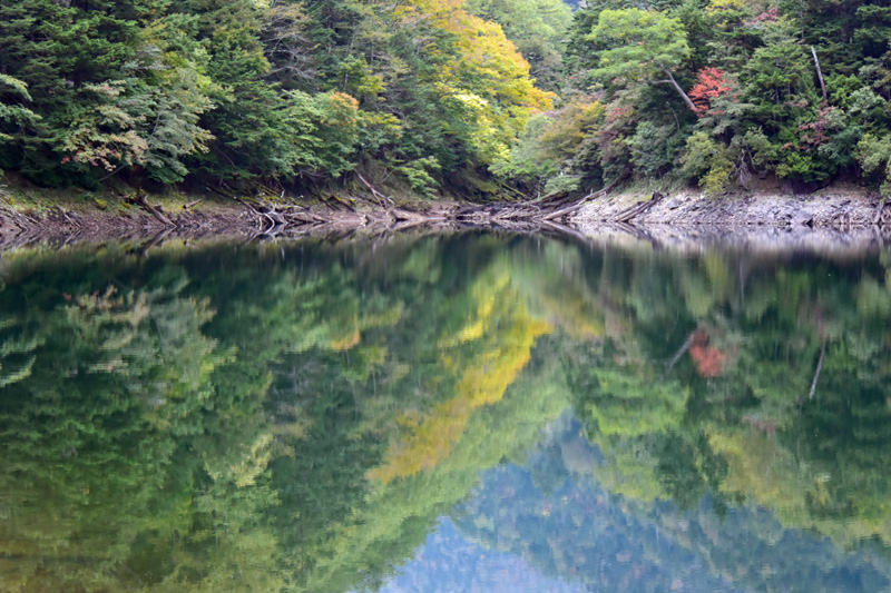 静かな湖は、風が無ければ風景が水面に映え、特に紅葉の時は綺麗だろう。紅葉には早かった
