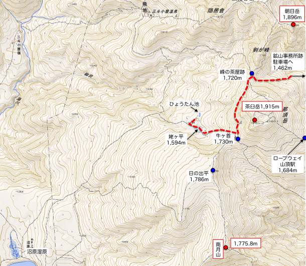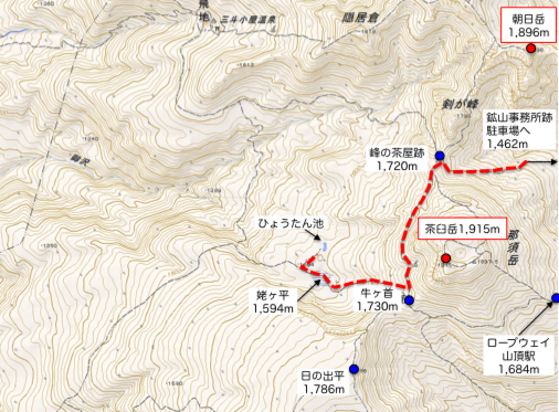 鉱山事務所跡駐車場〜峰の茶屋跡〜姥が平のコースを選ぶ <行き>
