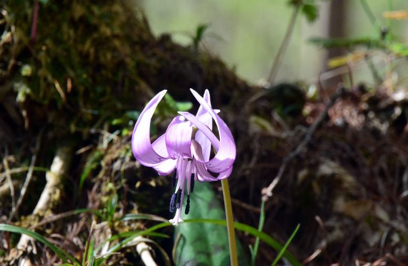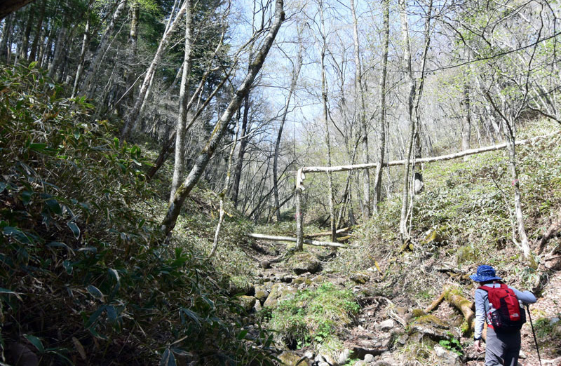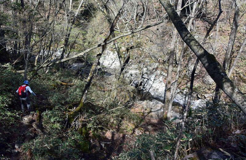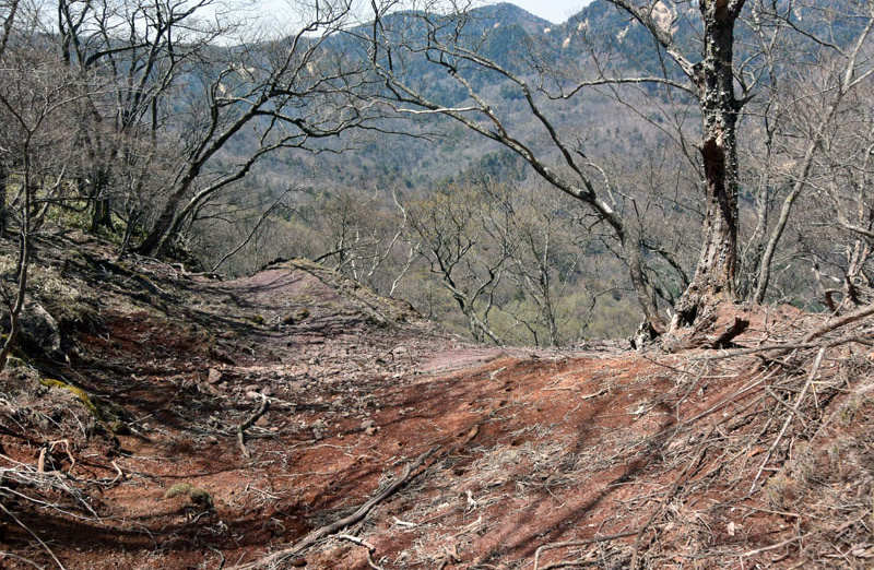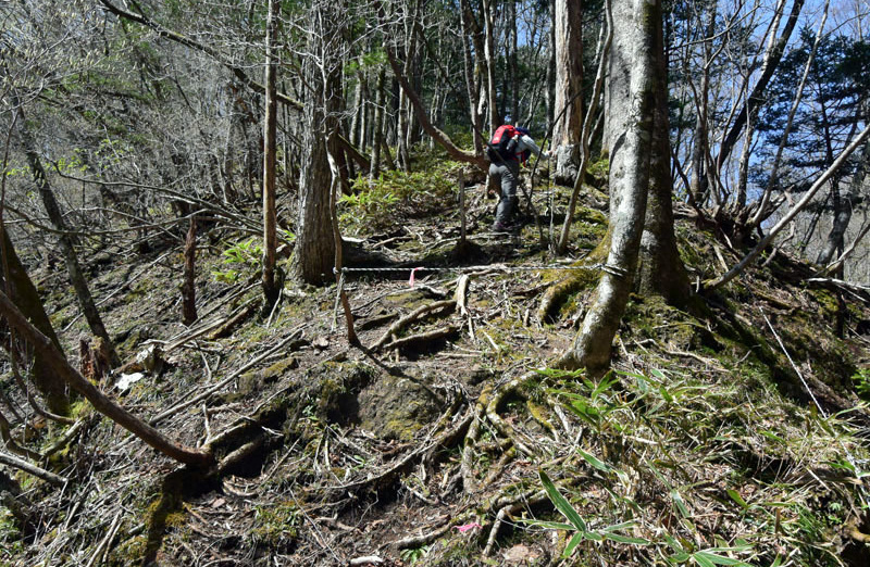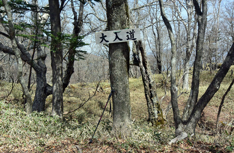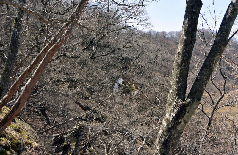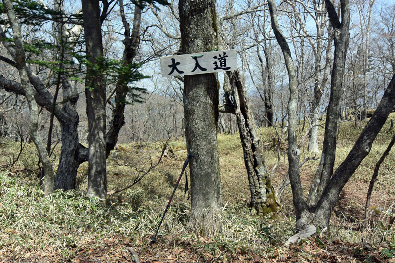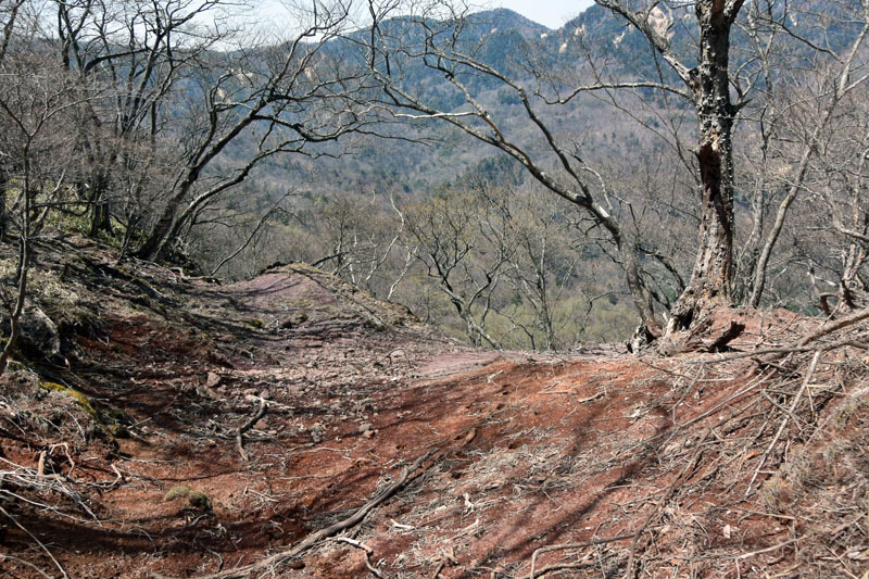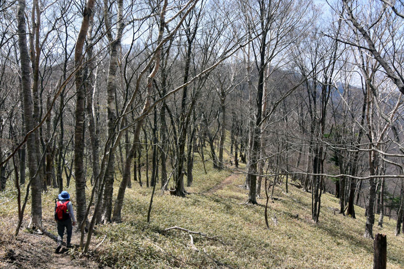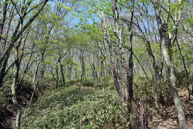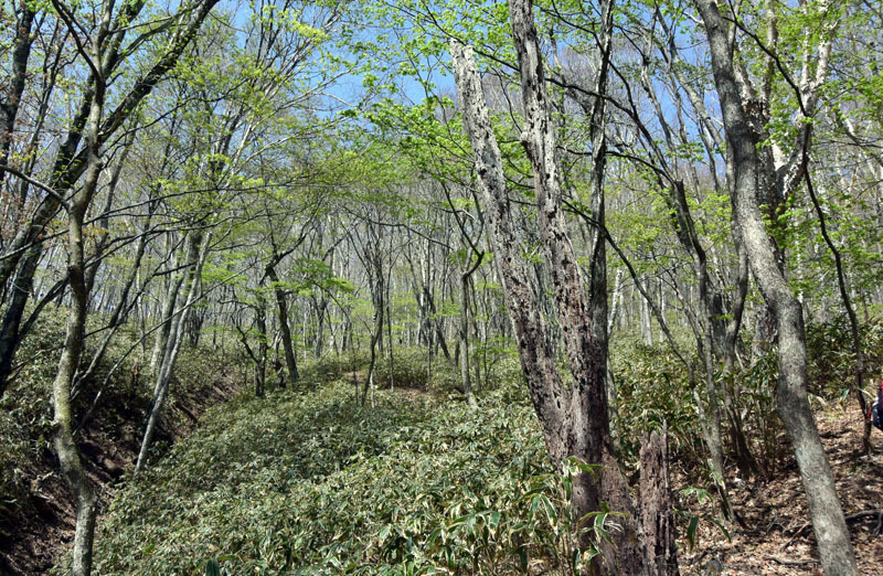 しかし、大入道までの登山道わきに「カタクリ」が咲いていた。思わぬ花を見ることができた。大入道から剣ヶ峰は、スッカン沢に至る急斜面の縁を歩く。