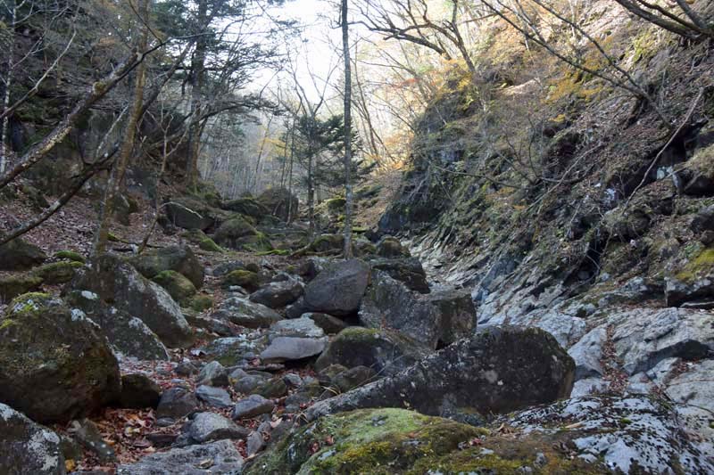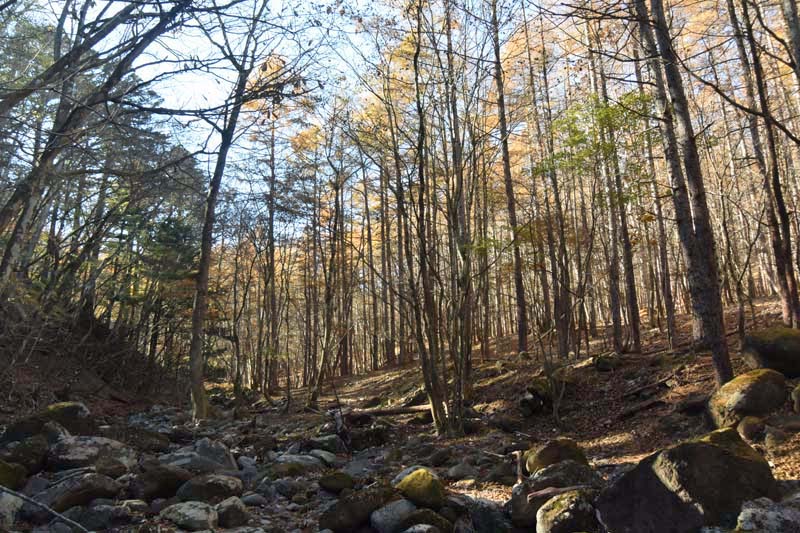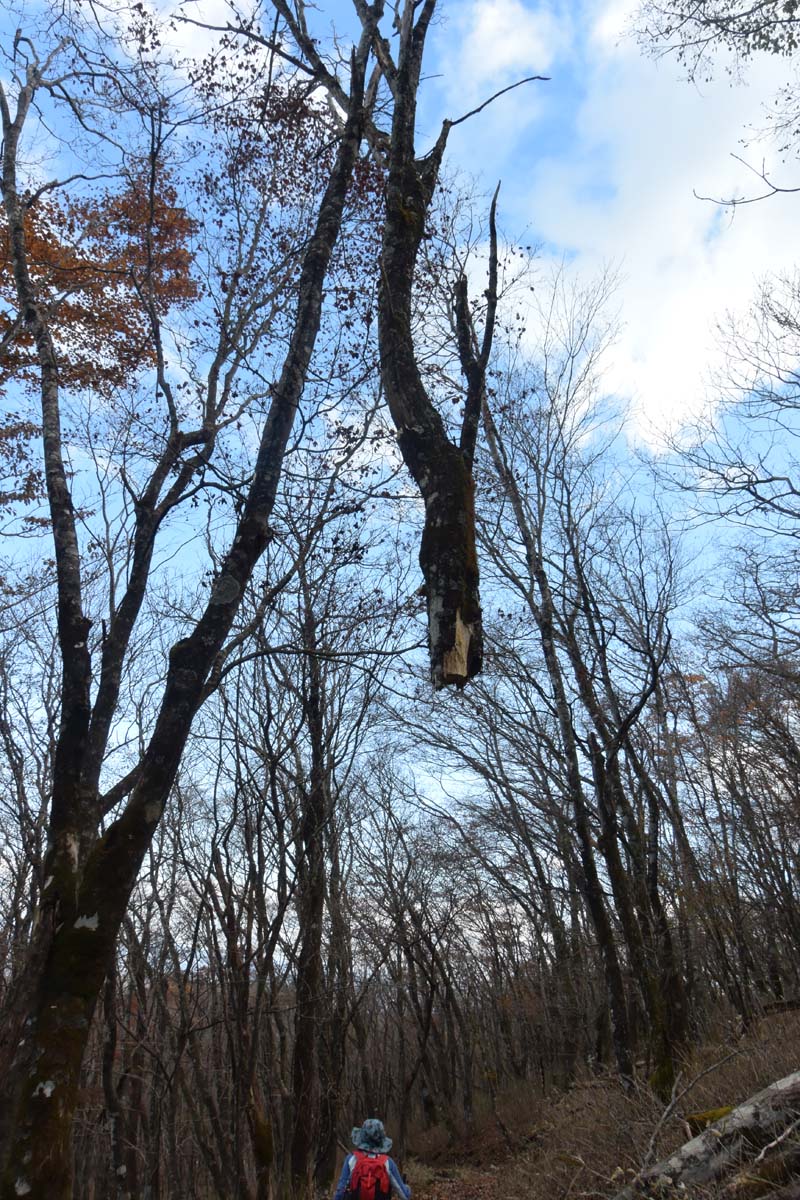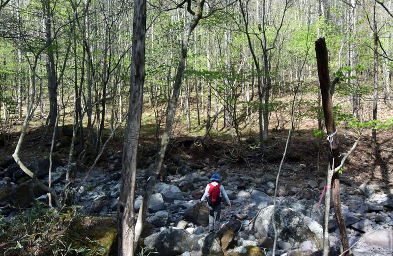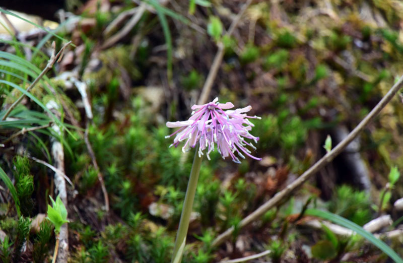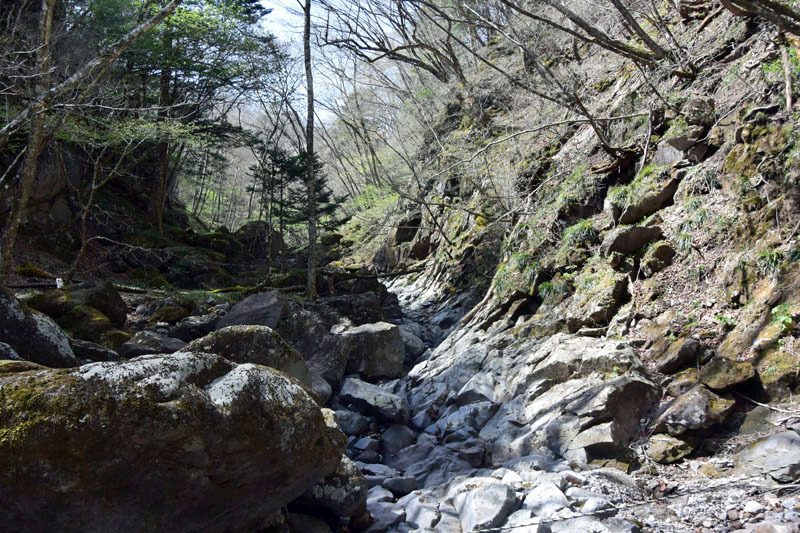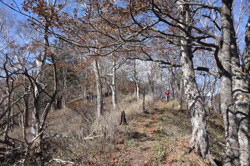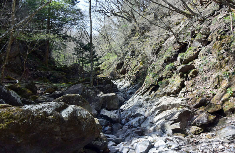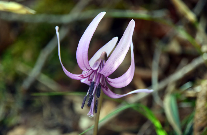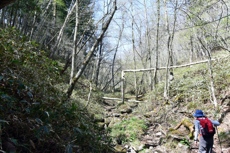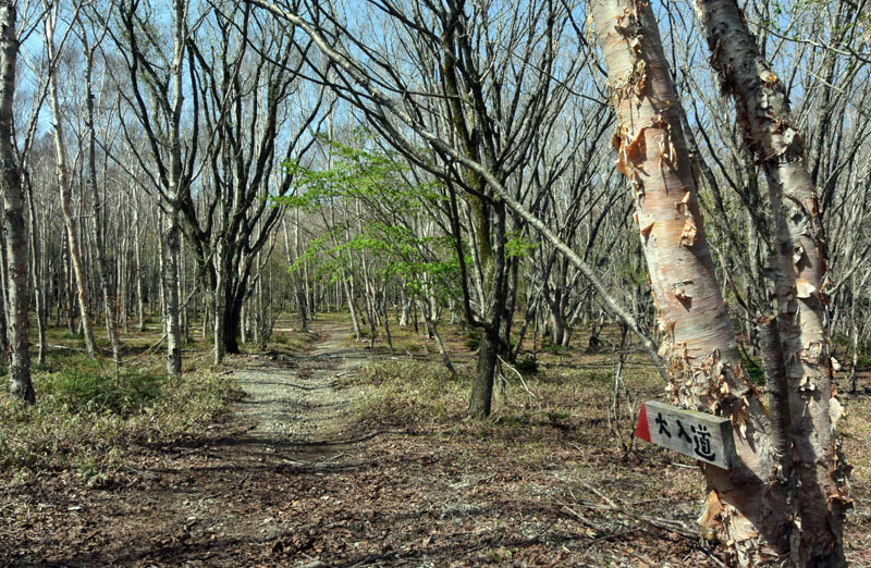しかし、大入道までの登山道わきに「カタクリ」が咲いていた。思わぬ花を見ることができた。大入道から剣ヶ峰は、スッカン沢に至る急斜面の縁を歩く。