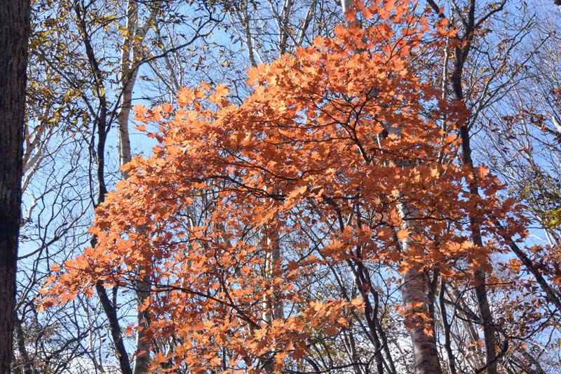 麓が紅葉の時期を迎えていた。山の駅たかはら〜大入道〜剣ヶ峰〜八海山神社〜大間々駐車場〜山の駅たかはらのコースで歩いてきた。