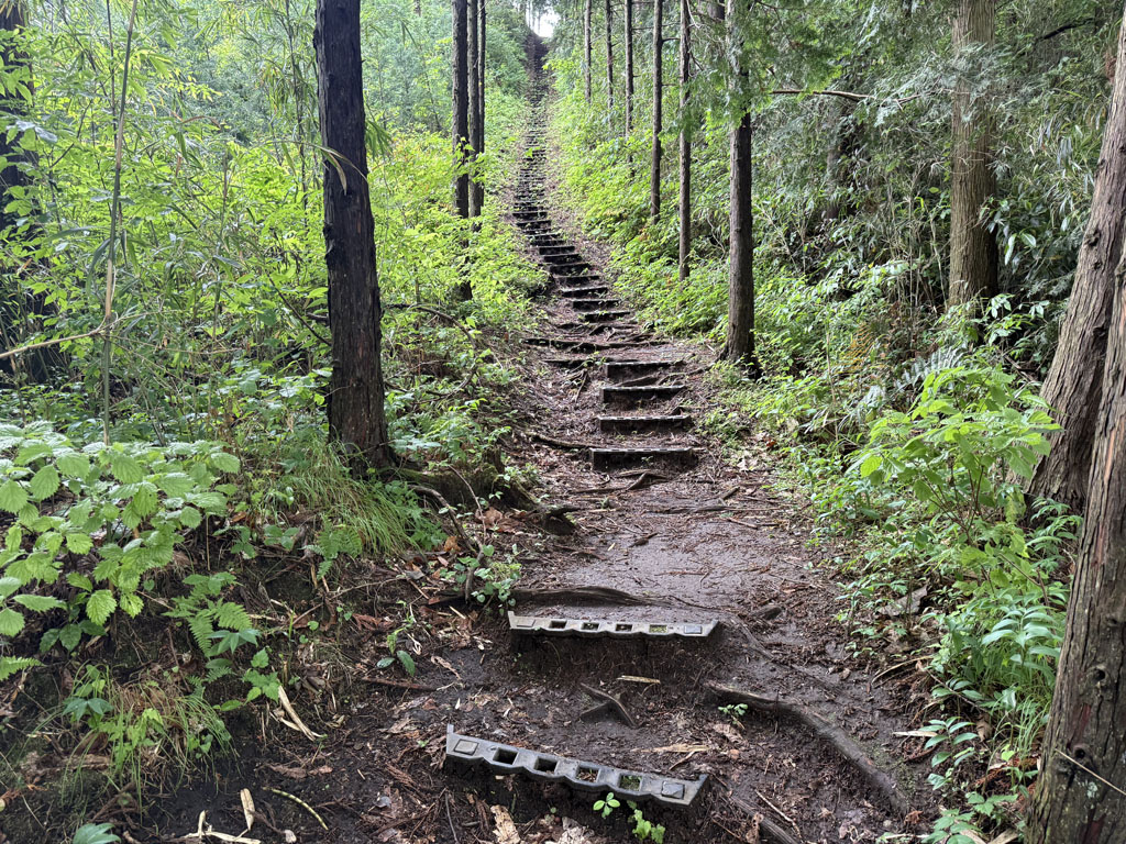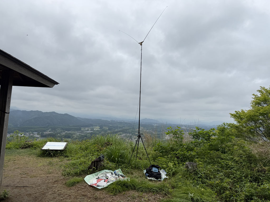 天気が良くないので低山の山を選んで登ったが、山頂までの距離は短いけど急登(階段含む)があり、 この時期で晴れていたら暑くて大変だったと思われる。山頂は平らで日光方面の眺望と開放感がある。 そして、麓が見えるので高度感も楽しめた。下山は急な下りや階段が少ない天狗岩方面から作業道を 歩くコースを選びました。アマチュア無線の運用は関東地域の局との交信となりました。