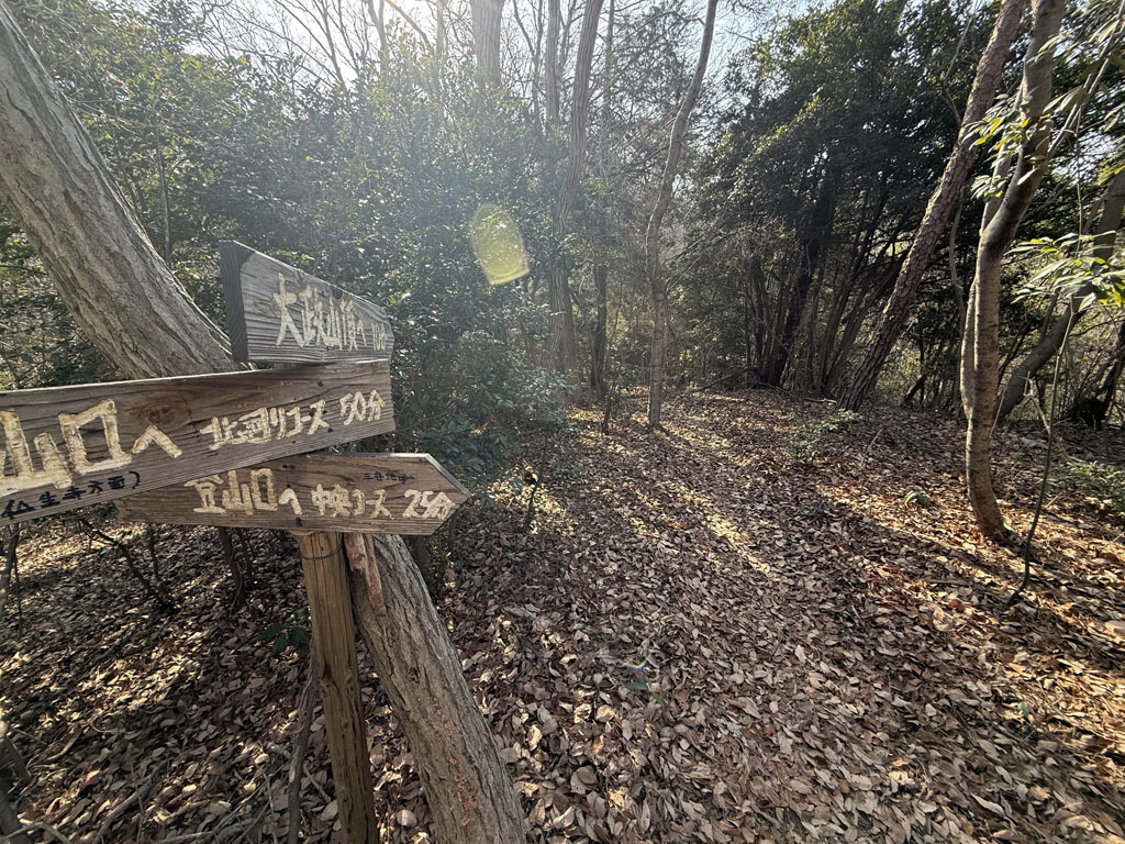 私はここで息が上がり呼吸を整えながら歩くと山頂に着きました。山頂は広葉樹に覆われ眺望はありませんが、