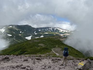 無く、お鉢平展望台手前にミニ雪渓がありましたが登れました。コースは麓からロープウェイとリフトを