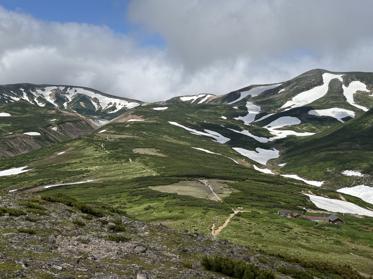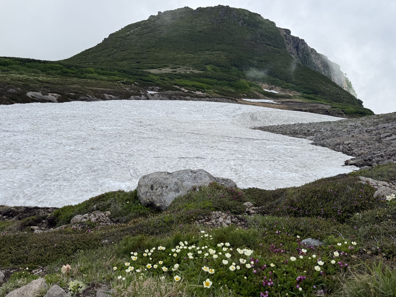 6月下旬から大雪山の山行記事を読むと登山道にも雪がある記事が多く見られ、残雪を登った経験がないため