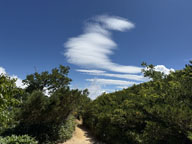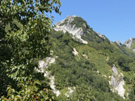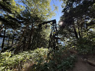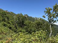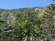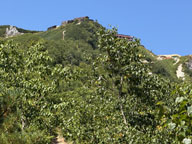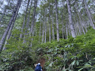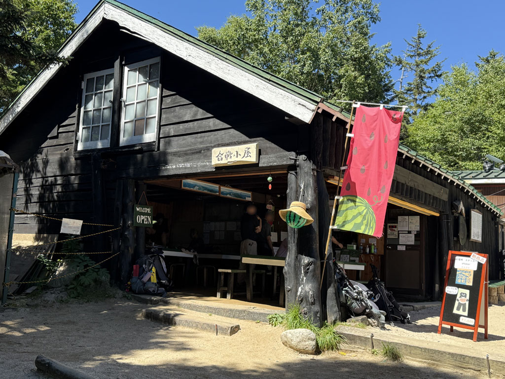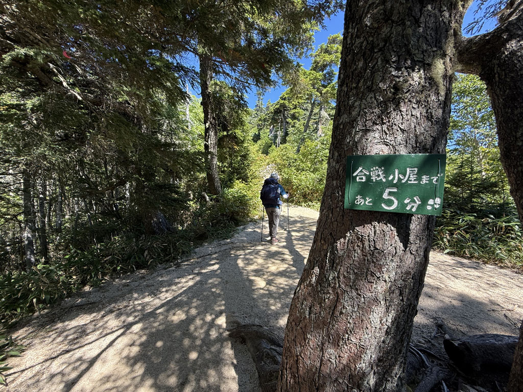 ペースを守りこまめな休憩で「合戦小屋」にたどり着く。ここで、スイカを食べ、体力、気力を回復させた。この辺から木々の高さが低くなり、