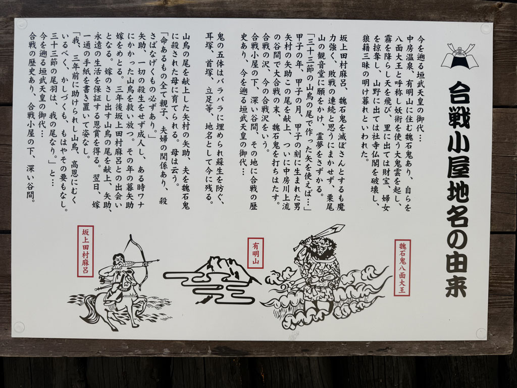 このルートは定期的に休憩出来るベンチと、約900m登ったところに食事が出来る「合戦小屋」がある事、