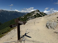 足の動きは早まらずマイペースで「燕山荘」と「燕岳」の分岐まで登れました。ここに来て北アルプスの山並みがドーンと見え、またまた感動しました。