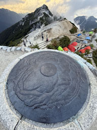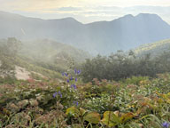 「燕山荘」に戻り夕日を楽しみにしていましたが雲に覆われ、夜は雨も降っていたようでした。次の日の朝は霧があり山頂は見えず、上空にも雲がある状況から、この日は山頂に行く