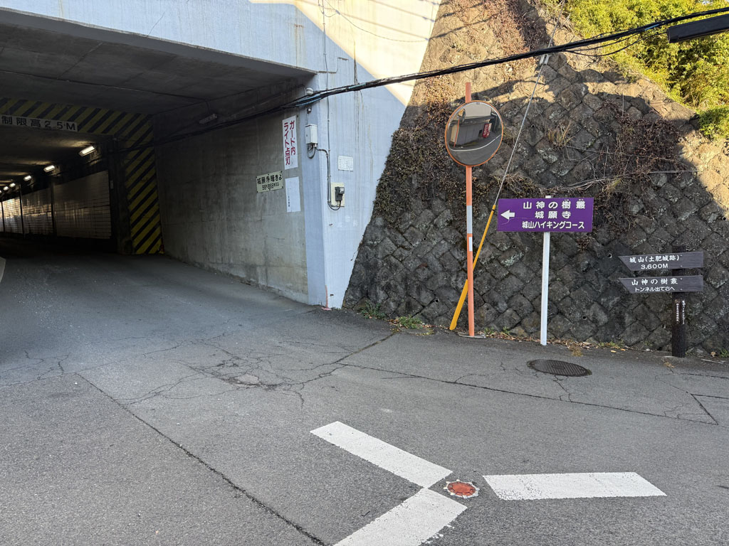 しばらくは舗装された車道(トラック1台分の幅ぐらい?)を歩きます。かぶと石入口から山道になり、
